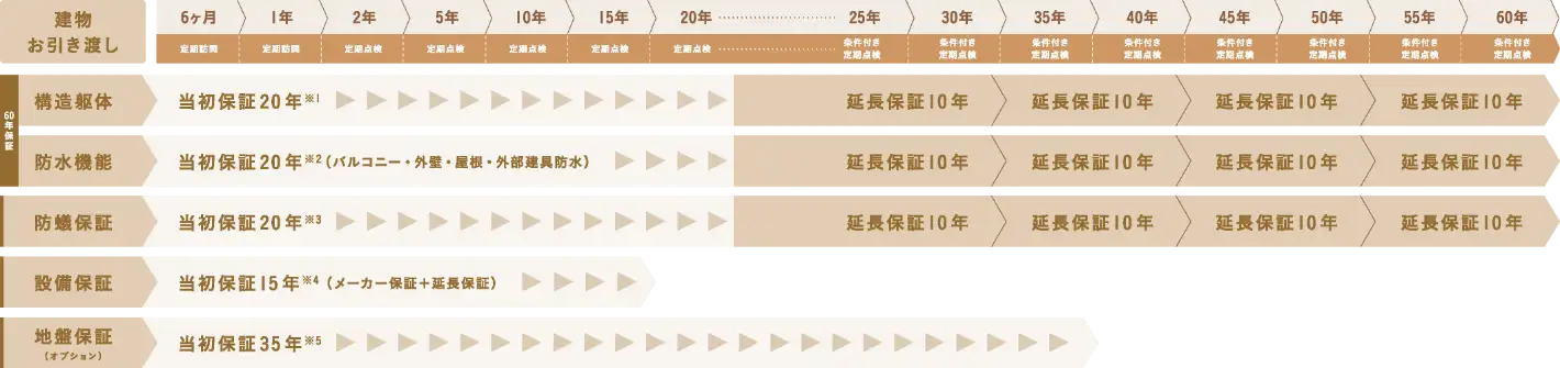 ※60年保証は20年目以降の定期点検および当社が指定する有償メンテナンスを受けていただくことが条件となります。