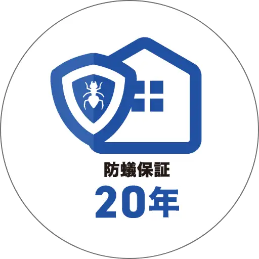 防蟻20年一括保証殺虫剤に比べて持続効果の長い防蟻シートを用いた防蟻対策を実施。これにより20年の長期保証を実現しました。20年目以降は有償メンテナンスを行うことで最長60年の保証が可能となります。さらに、より長い期間の保証を求める方に向けた30年保証※1もご用意しています。