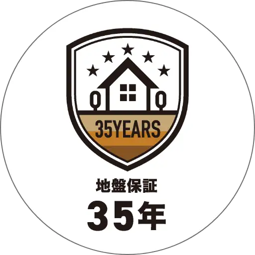 地盤35年一括保証 (オプション)家を支える見えない地盤の中まで、しっかりと保証するオプションをご用意。不同沈下に起因する建物の損害に対し、原状回復のための補修費用や補修期間中の仮住居費用などを、お引き渡し日より35年間、1事故につき最大5,000万円まで保証します。