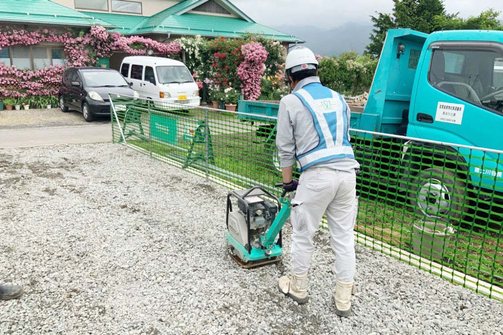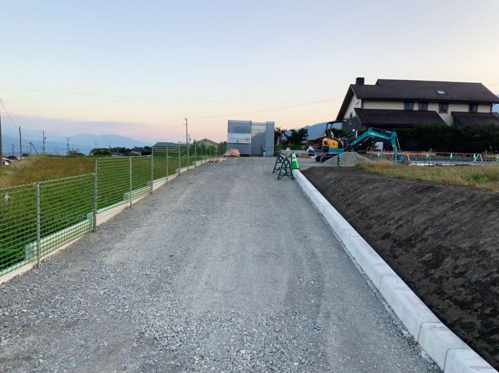 工事現場というものは、平穏な生活を送ってきたご近所の方たちにとっては、あまり喜ばしいことではありません。なぜなら、音、車の出入り、景観等今までの生活から少なからず変化が起こるからです。 一方、建築主のお客様は、これらのご近所様とは末永くお付き合いをすることになります。ヤマウラでは、お客様の住宅建築が最高・最良のものと成るよう、ご近所様への配慮も忘れない、現場運営を行っています。仮設トイレもとてもきれいで、一見しただけでは、トイレに見えません。また、現場から、土を出さない(汚さない)ために、先行して砕石敷を実施しています。