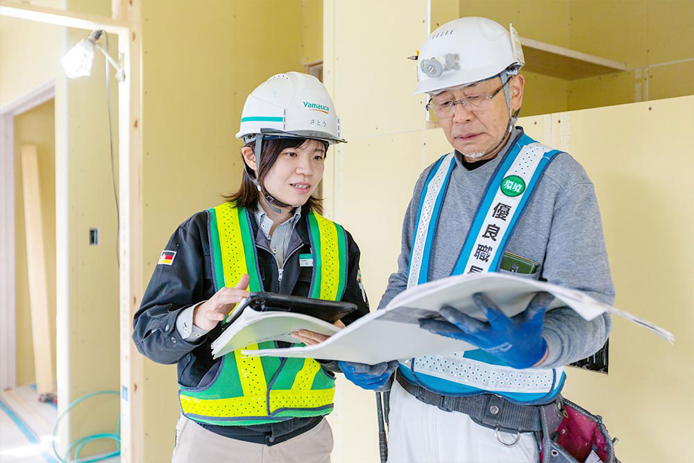 ヤマウラの現場は、お客様のことを第一に考え家づくりをしています。お客様が現場に突然来られても、口下手ながら家の出来栄えを丁寧に説明してくれます。 お引渡しをさせていただいたお客様の中には、毎日のように我が家の進み具合を楽しみに、現場に来られる方もいました。そんな現場でも、職人さんは嫌な顔ひとつせず、丁寧に今日の工事内容を説明してくれます。「おかげでヤマウラの現場の虜になりました」とお客様に言われたことを思い出します。