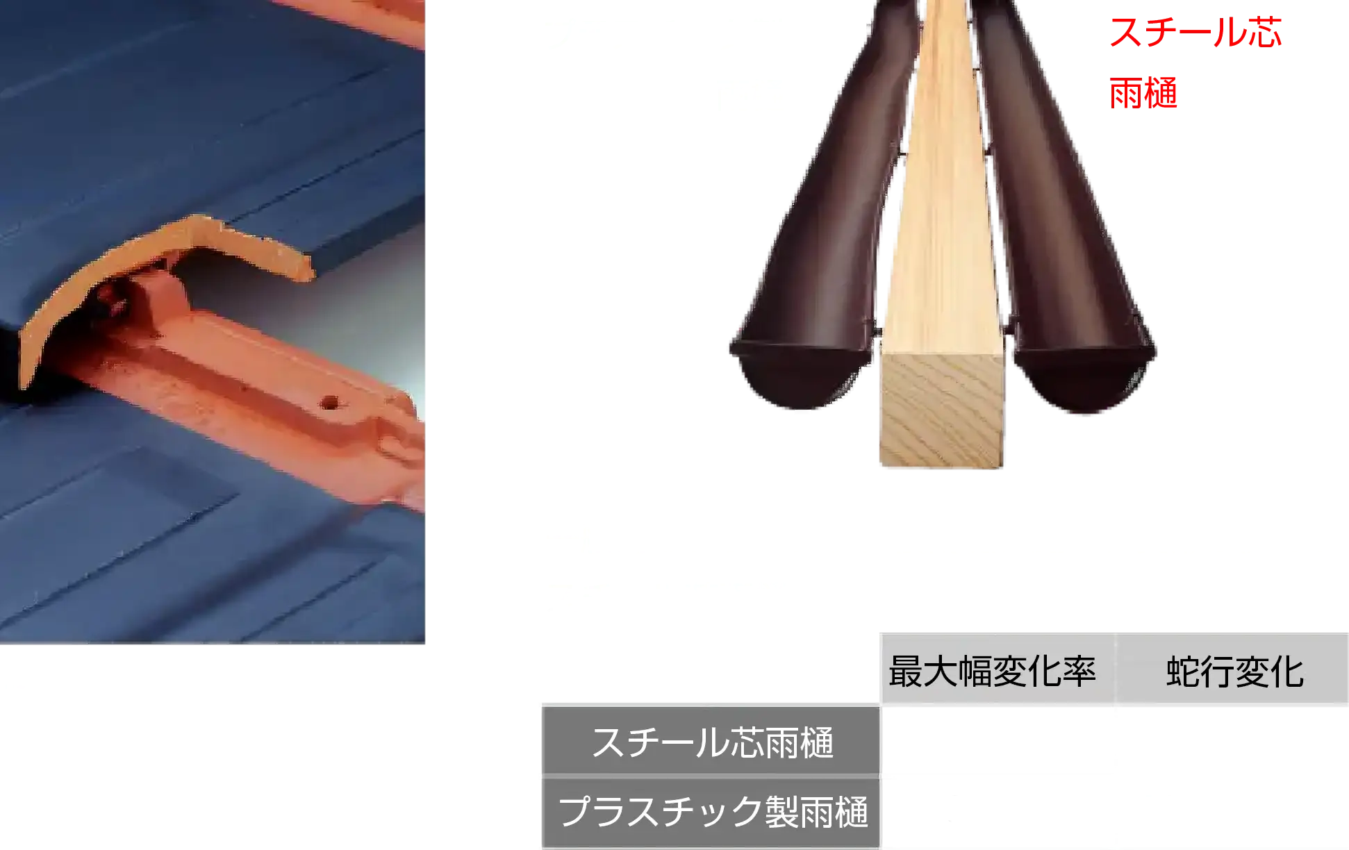 高い耐候性・耐久性を発揮する陶器瓦は、機能性と経済性を兼ね備えた、まさに日本の住まいの屋根に最適な部材。汚れも付きにくく、塗り替えや葺き替えなどの手間や費用もほとんどかかりません。また、熱による変形や経年劣化による破損、退色の少ないスチール芯の雨樋を採用しています。